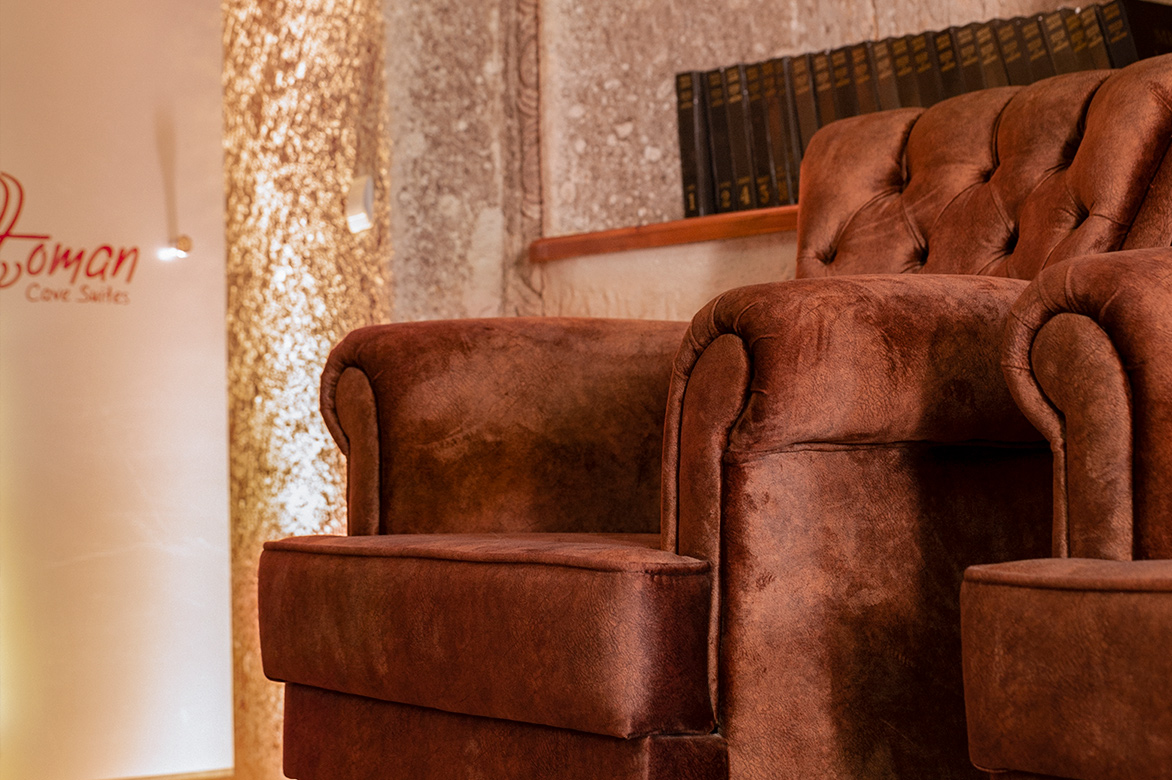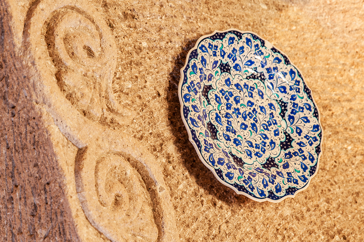 A small rock-carved suite with a super-sized round double bed, fireplace and hammam-style bathroom.